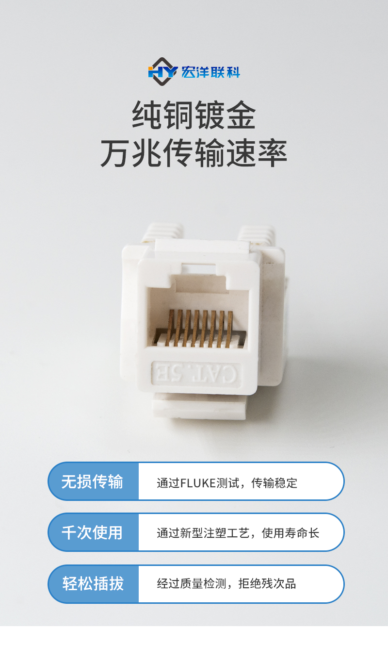 插拔寿命: ≥ 1000次(使用符合FCC认证的水晶头)