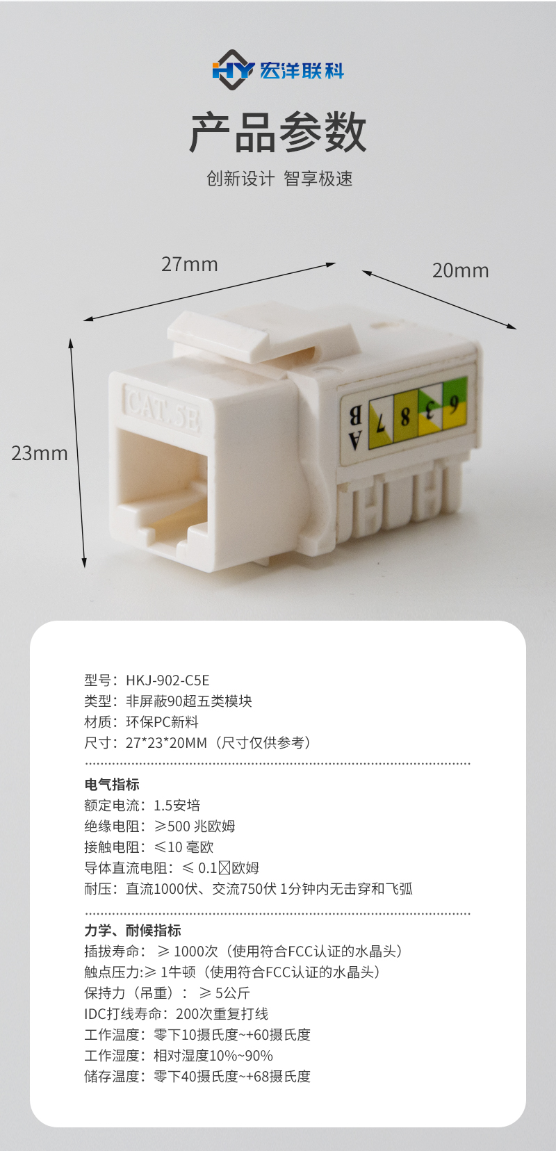触点压力:≥ 1牛顿(使用符合FCC认证的水晶头)