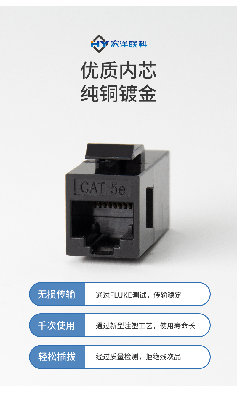 插拔寿命: ≥ 1000次(使用符合FCC认证的水晶头)