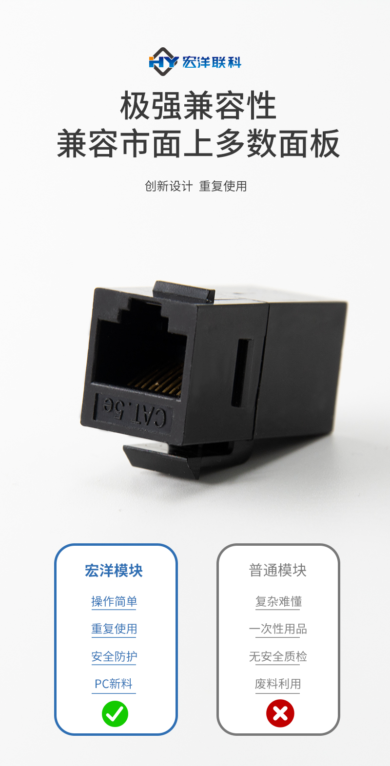 类型:非屏蔽180度转接六类模块