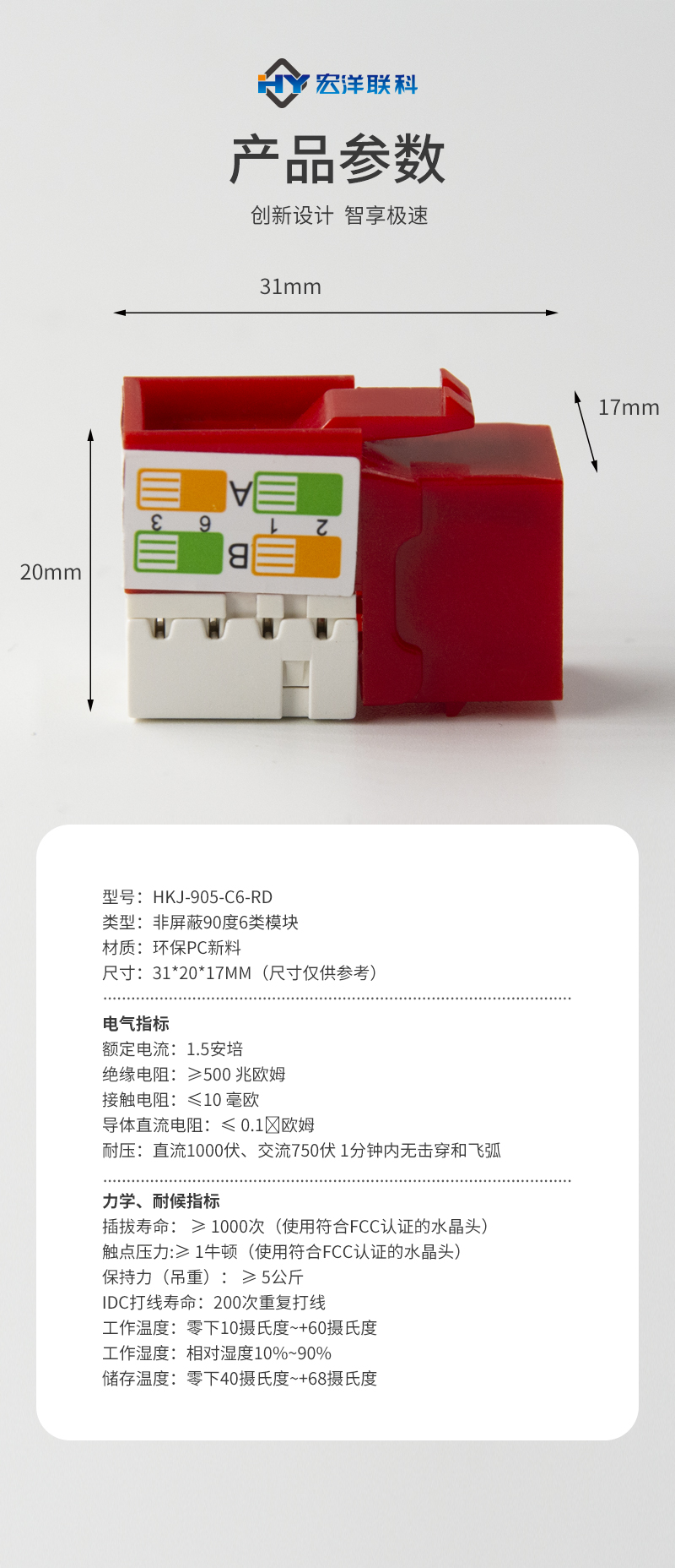 触点压力:≥ 1牛顿(使用符合FCC认证的水晶头)