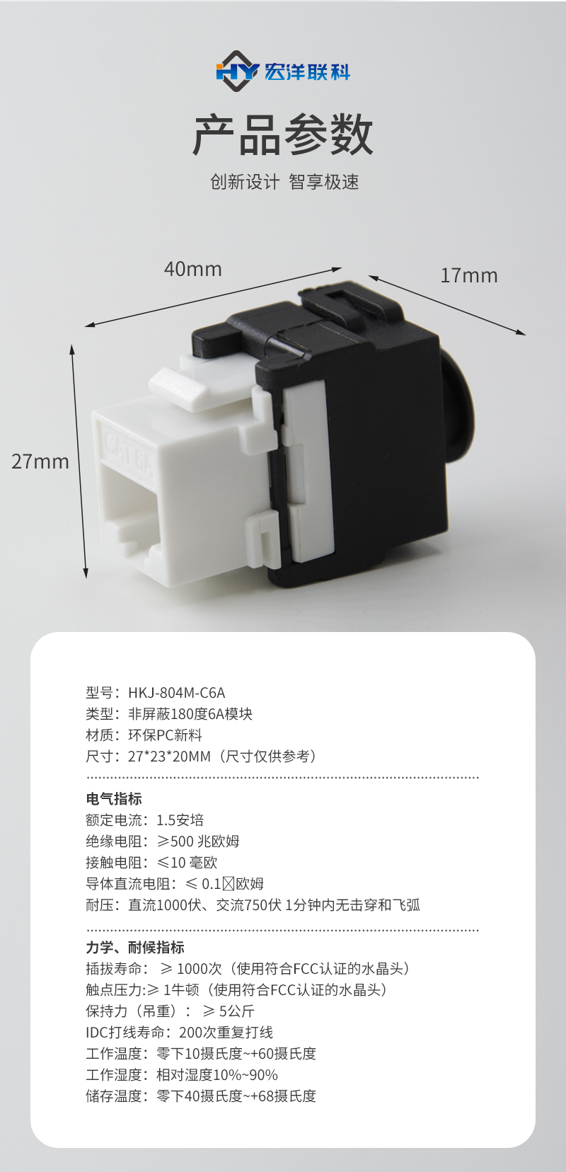 触点压力:≥ 1牛顿(使用符合FCC认证的水晶头)