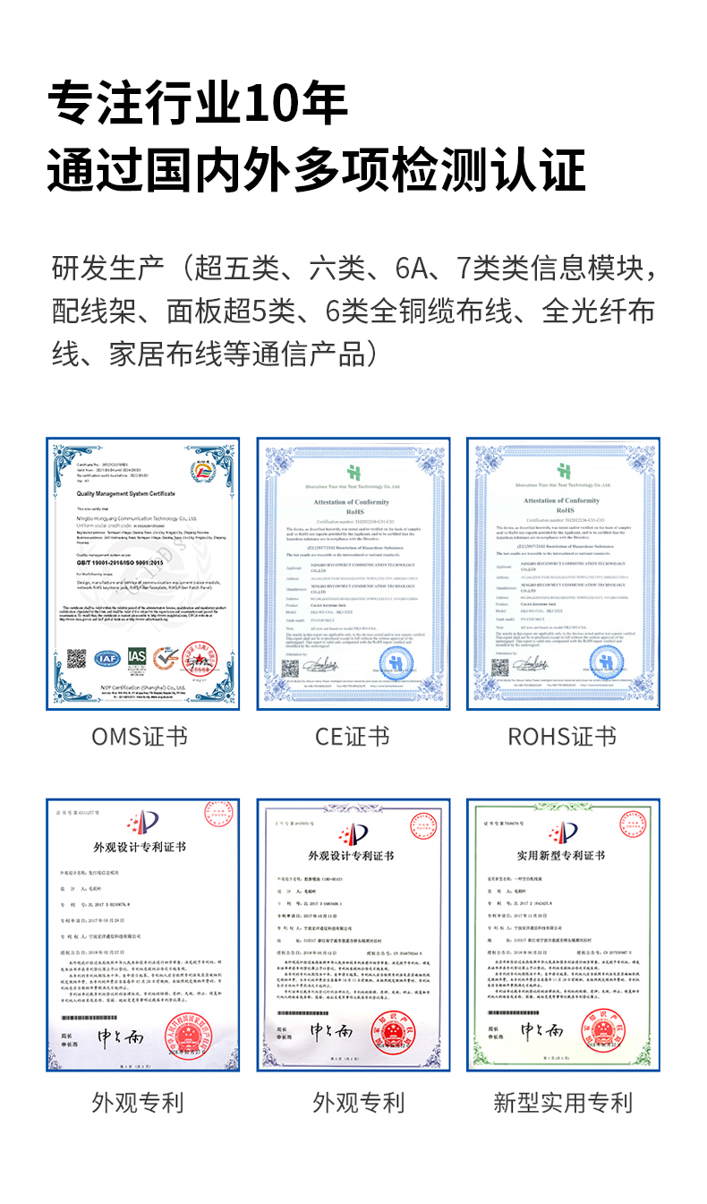 插拔寿命: ≥ 1000次(使用符合FCC认证的水晶头)